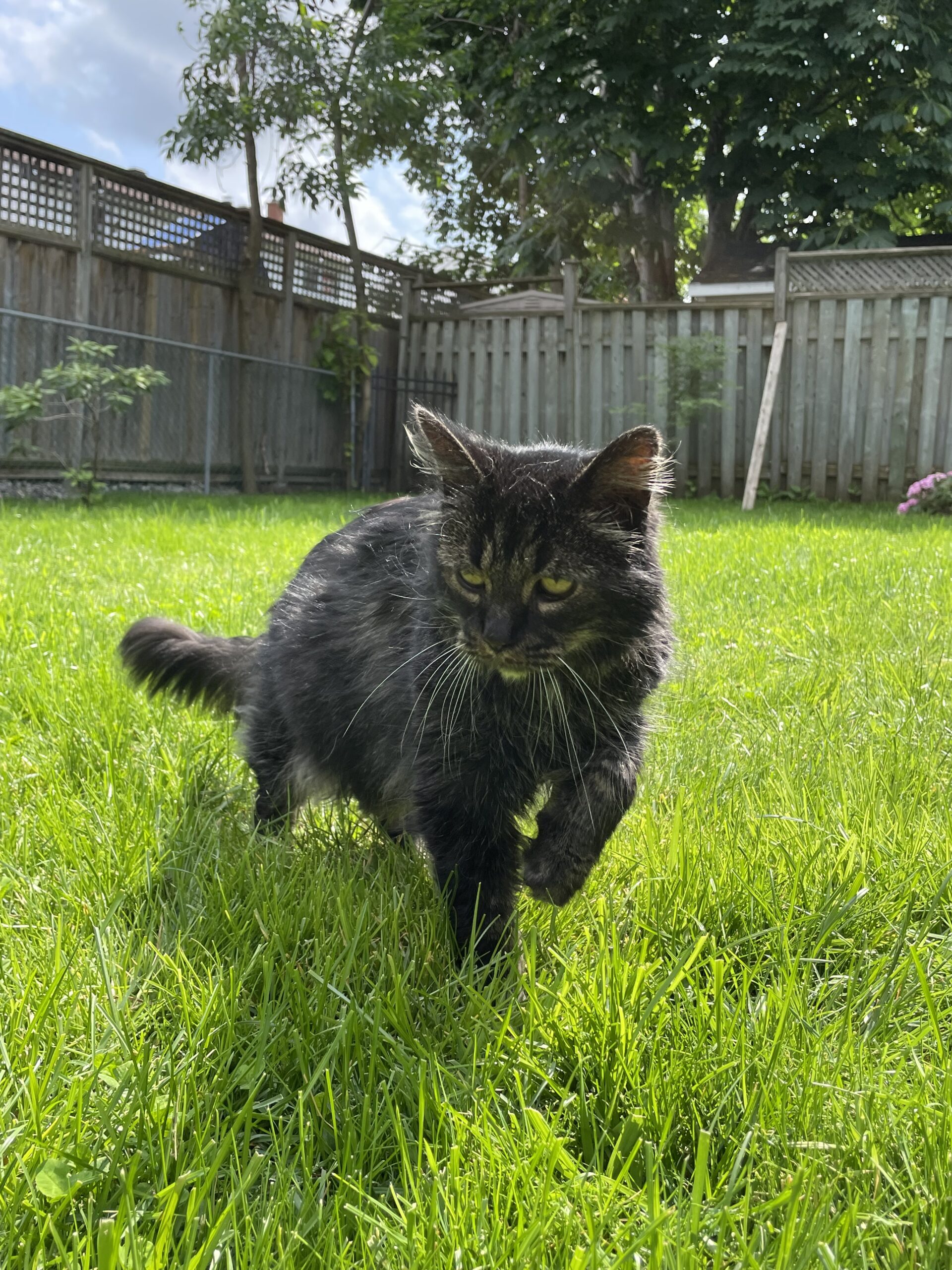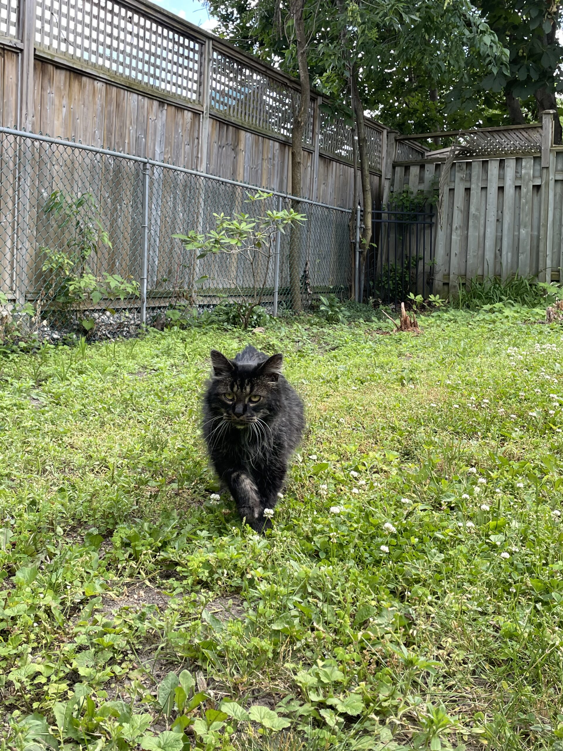 Before we found our dream home in the beautiful neighbourhood of Ottawa South, we lived in a condo with minimal outdoor space (a balcony). We have a senior cat, Turi, who had not been able to jump up to all his favourite high places. To keep Turi active, we started taking him for walks in a nearby park, and he found great joy being outdoors with his humans. When we outgrew the condo and started house-hunting, we decided one of the ‘must have’ features was a decent sized backyard.